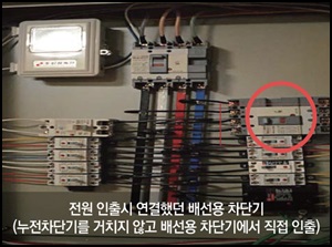 • 우기 시 감전에 대비한 배전반, 분전반, 이동전선 등의 안전장치 설치 여부