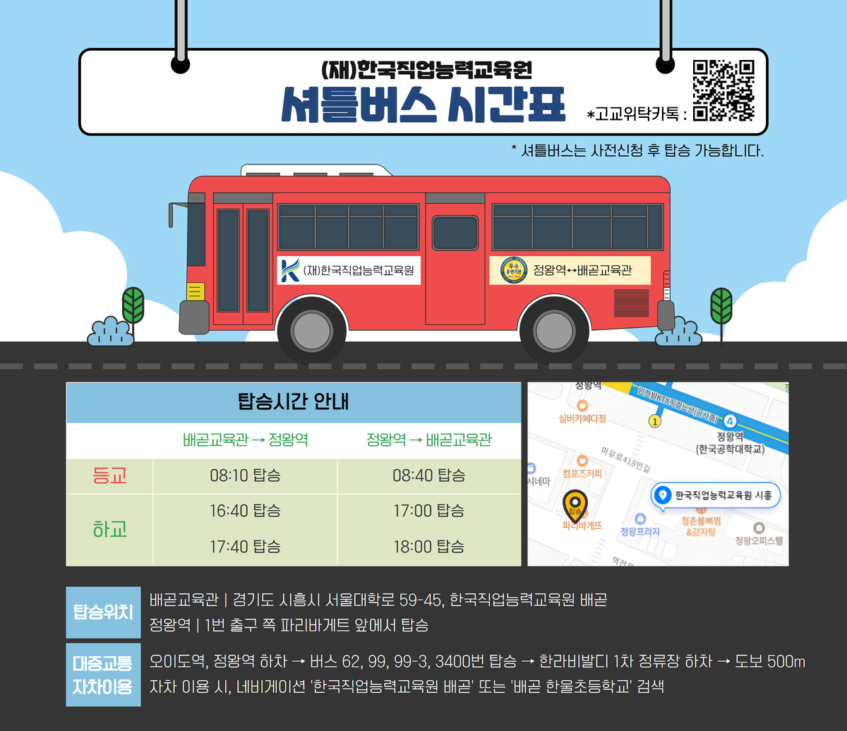 셔틀버스 신청을 희망하는 학생은 카카오톡 메세지 보내주세요.