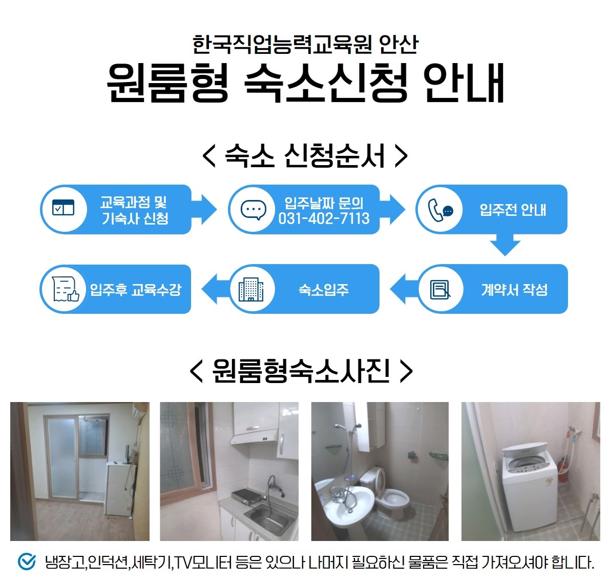 [숙소안내] 1인1실 원룸형 숙소 신청안내 2023-04-24 16:29