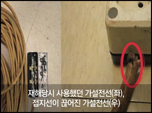 2016년 7월 천안의 한 건축공사 현장에서 사고발생. 철근공인 재해자가 1층 슬라브 위의 철근더미에 앉아서 보 철근 조립작업 중 철근 절단기에서 누설된 전류로 감전되어 사망.