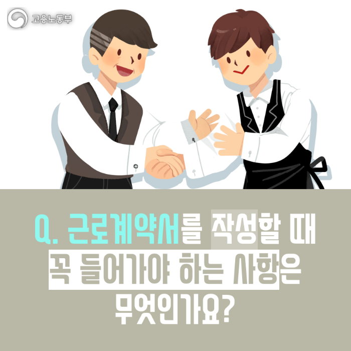 Q. 근로계약서를 작성할 때 꼭 들어가야 하는 사항은 무엇인가요?