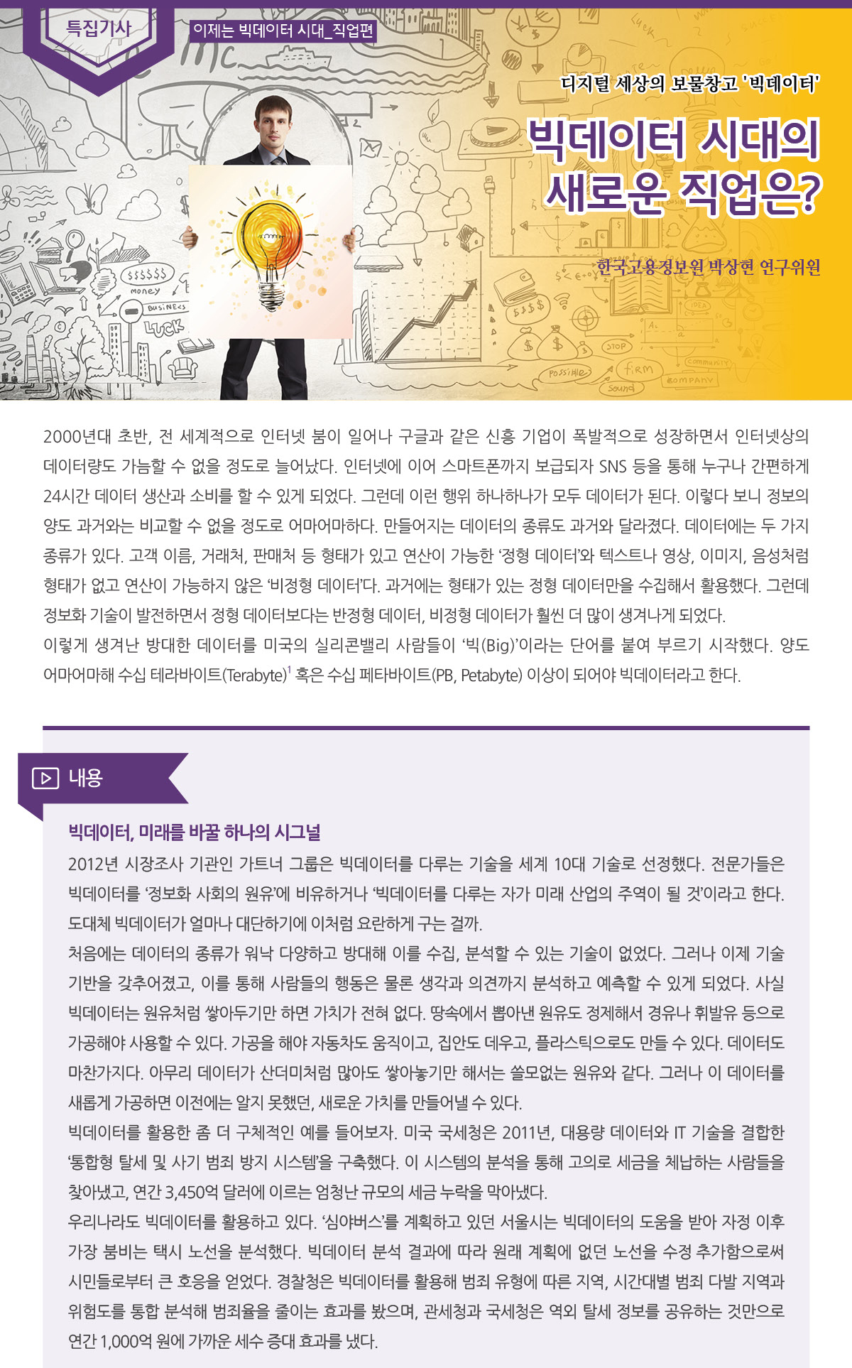 [한국고용정보원] 빅데이터 시대의 새로운 직업은? 2018-01-18 10:47