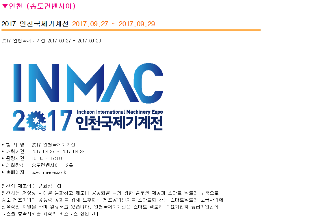 2017년 인천국제기계전 (INMAC) 2017-09-01 11:04