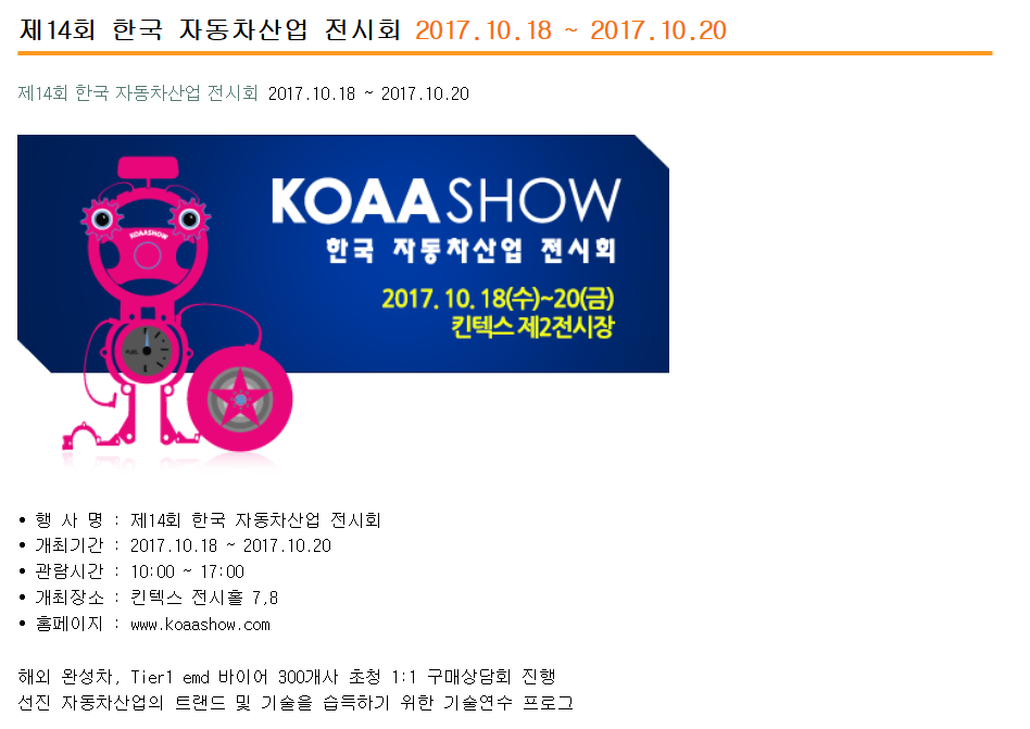 제 14회 한국 자동차산업 전시회 2017-09-29 10:07
