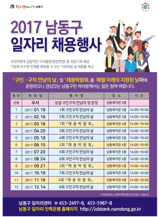 2017년 인천 남동구 일자리 채용박람회 일정 (1월 ~ 12월) 2017-01-10 11:36