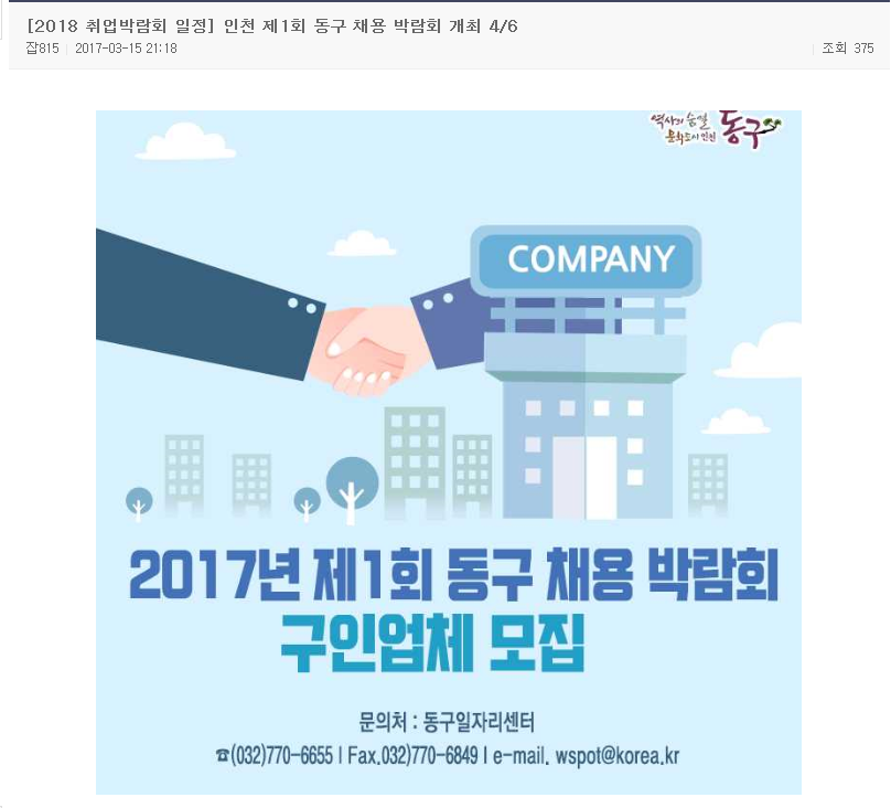 2017년 제1회 인천동구 채용박람회 2017-03-20 10:19