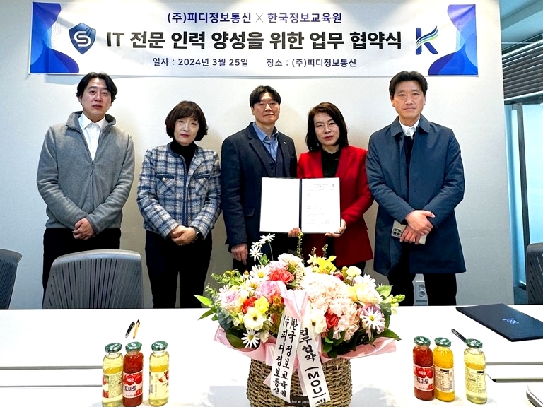한국정보교육원은 (주)피디정보통신과 'IT 전문 인력 양성을 위한 업무 협약식'을 2024년 3월 25일 가졌습니다.
