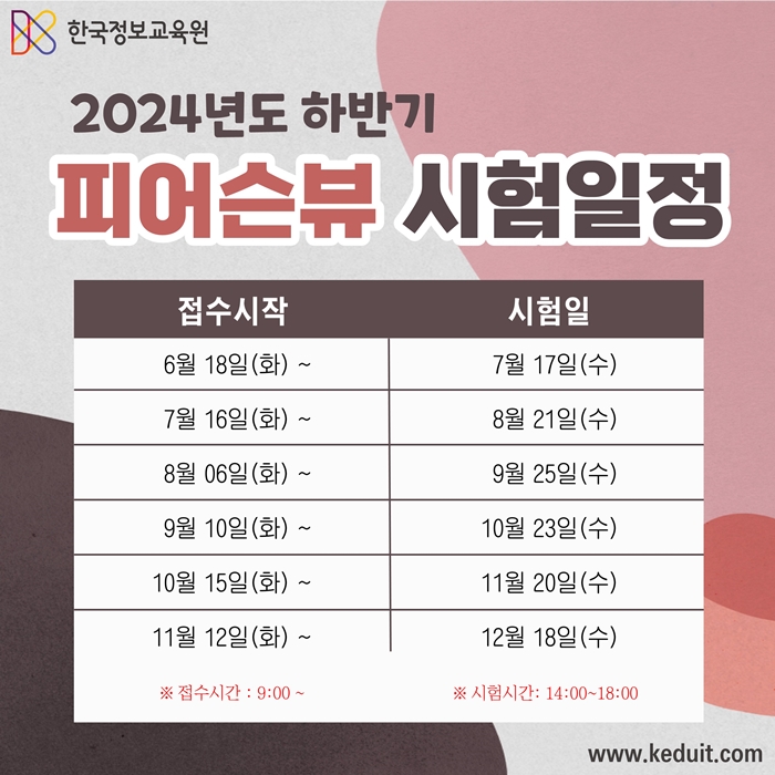 한국정보교육원은 한 달에 한 번, 피어슨뷰 시험장을 운영합니다. 자세한 일정을 꼭 확인해주세요. ※ 시험 일정은 변경 될 수 있습니다.