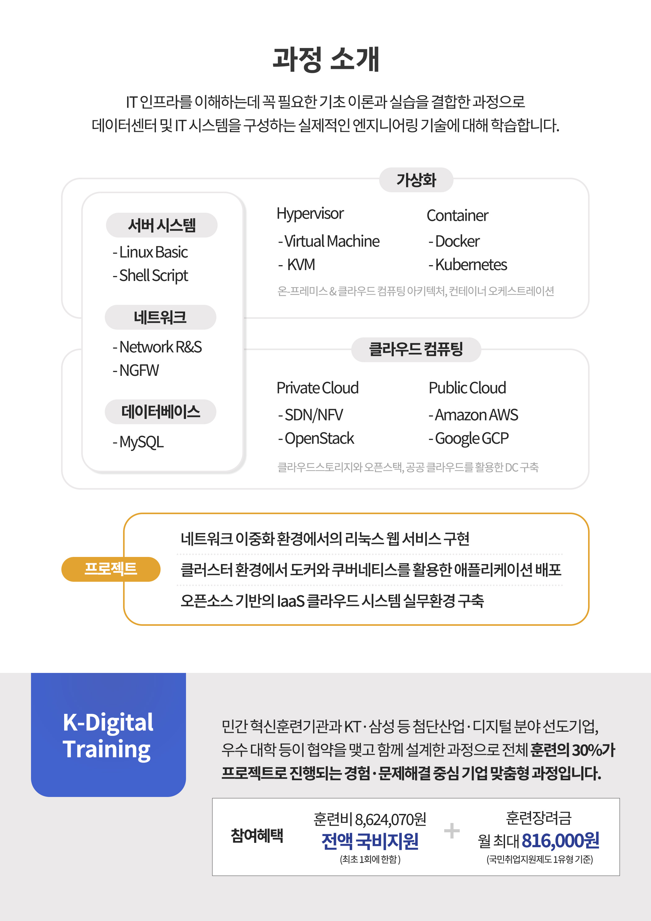 ○ 클라우드 데이터센터 엔지니어 양성 과정은 K-디지털 트레이닝 과정입니다.