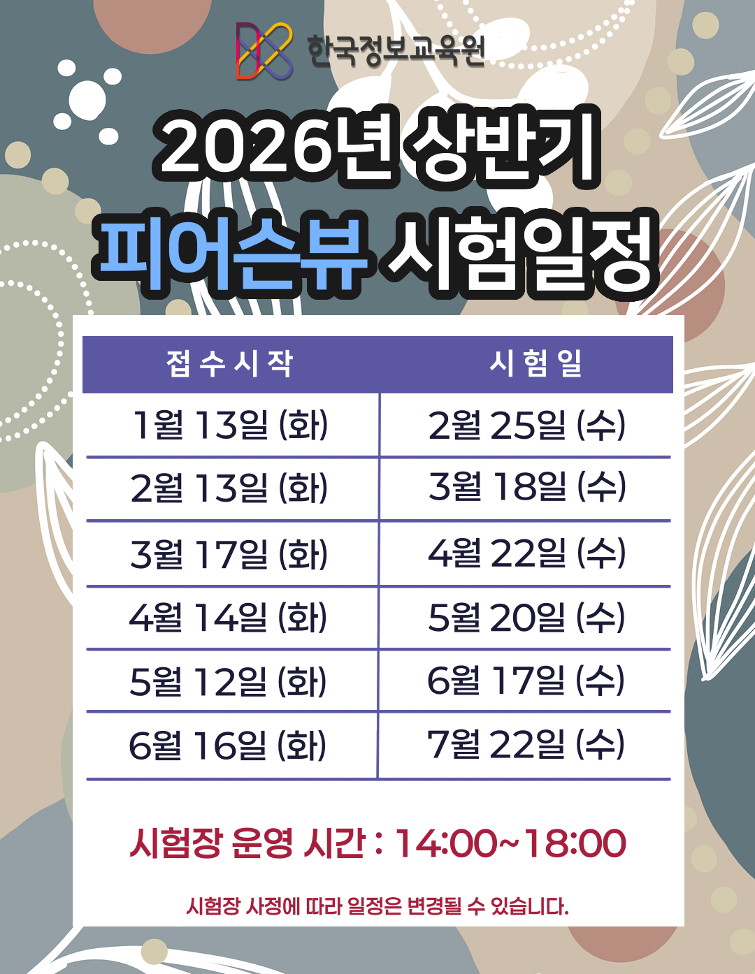2026년도 상반기 피어슨뷰 시험일정 안내 (1월~6월)