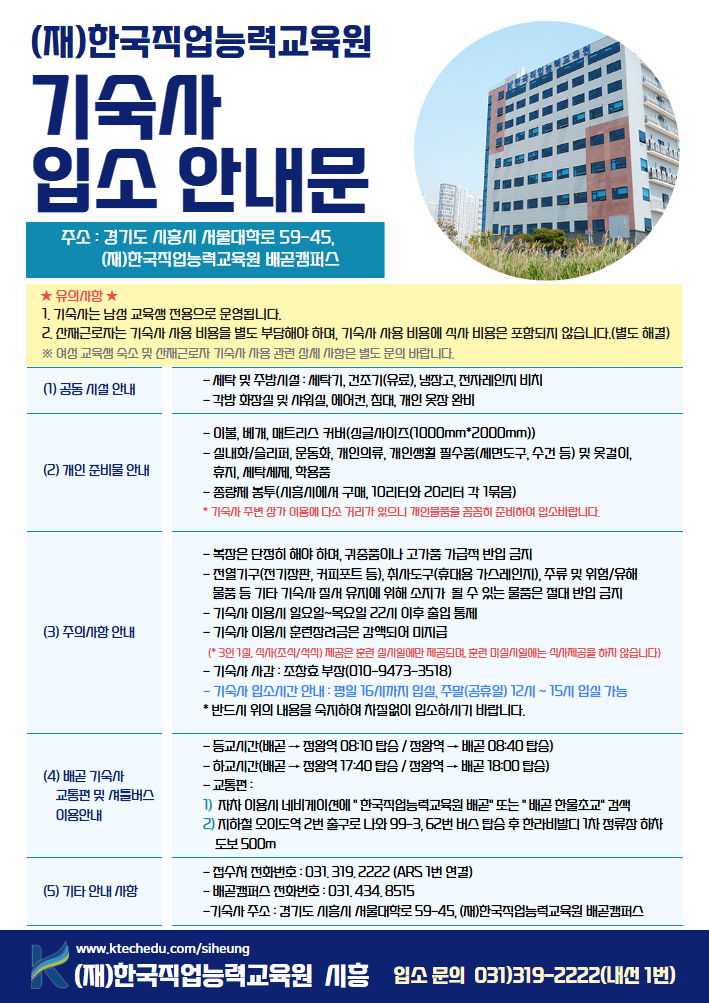 * 기숙사와 셔틀버스는 사전에 신청하신 분들만 이용 가능합니다.
